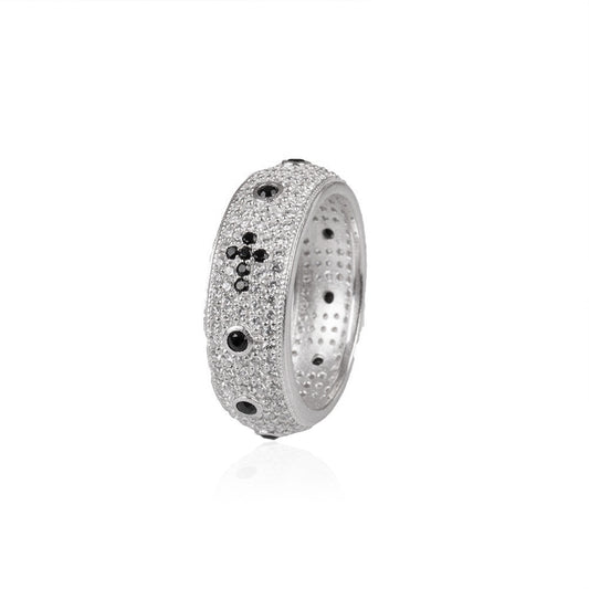 Anello Rosario fascia larga con Swarovski bianchi